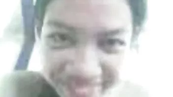 آسیایی روی صورت او نشسته و ماساژ خانگی از blowjob را نشان می دهد